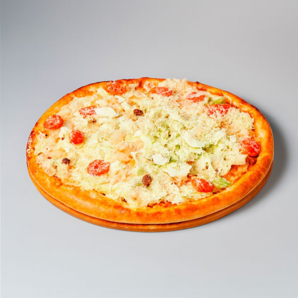 Томатный соус, моцарелла, halal курица, айсберг, соус цезарь, черри, пармезан, перепелиные яица
